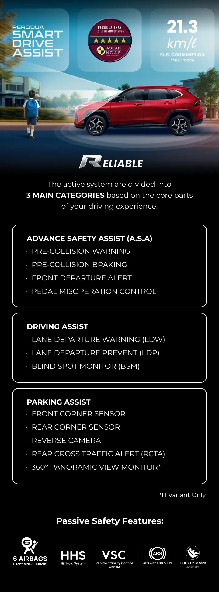 | PERODUA SMART DRIVE ASSIST | TRAZ 1.5 X (D-CVT) | TRAZ 1.5 H (D-CVT) | TRAZ 1.5 H 2T (D-CVT) |